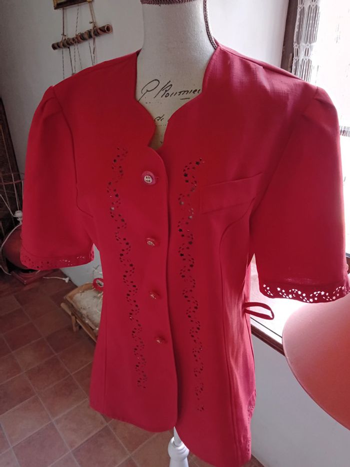 Blazer avec épaulettes, taille 42, fabriqué en France, 100% polyester, très bon état, manque juste ceinture.
