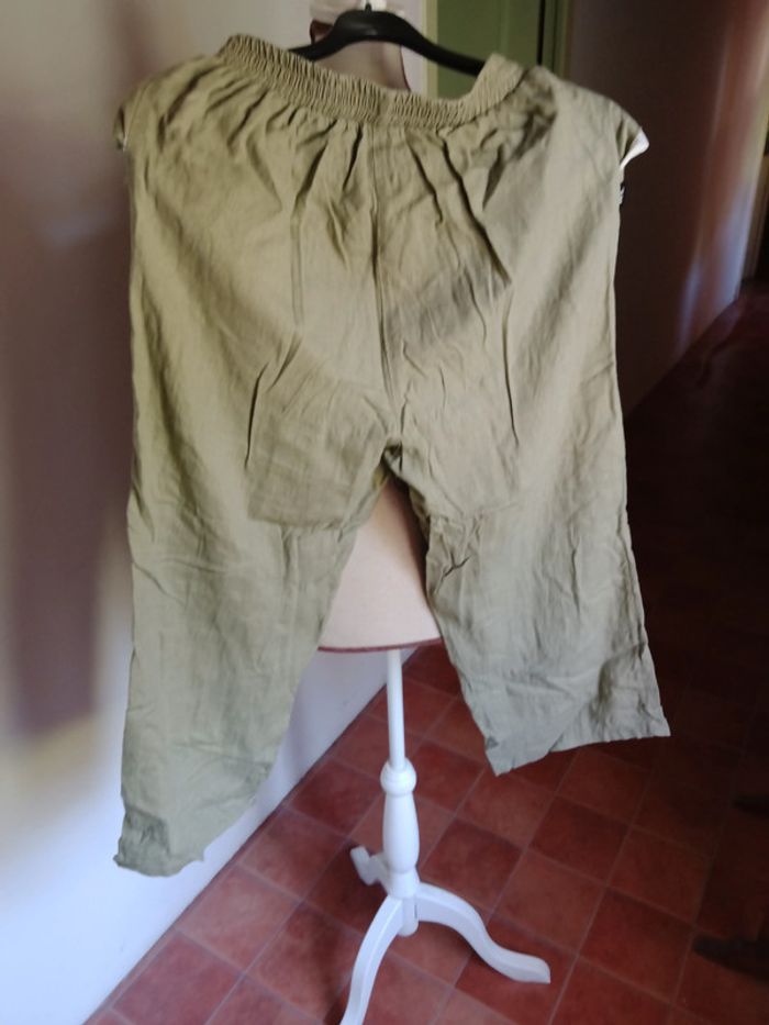 Pantacourt kaki taille 1, de chez Nygel, 55% linen, 45% viscose, très bon état.