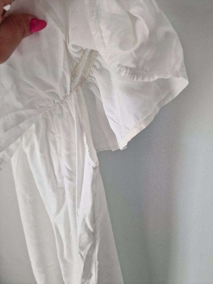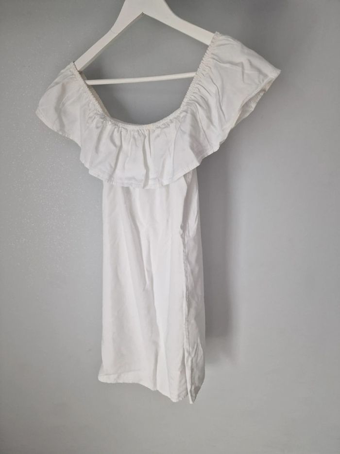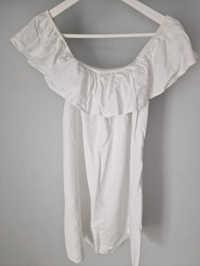 #robechoupta91 Robe blanche Épaules dénudées Volant élastique Taille unique N'esitez pas à faire un tour dans mon dressing les réductions sur les lots sont activées