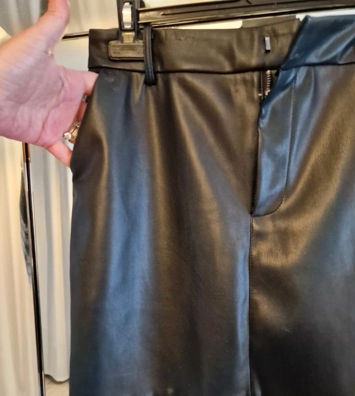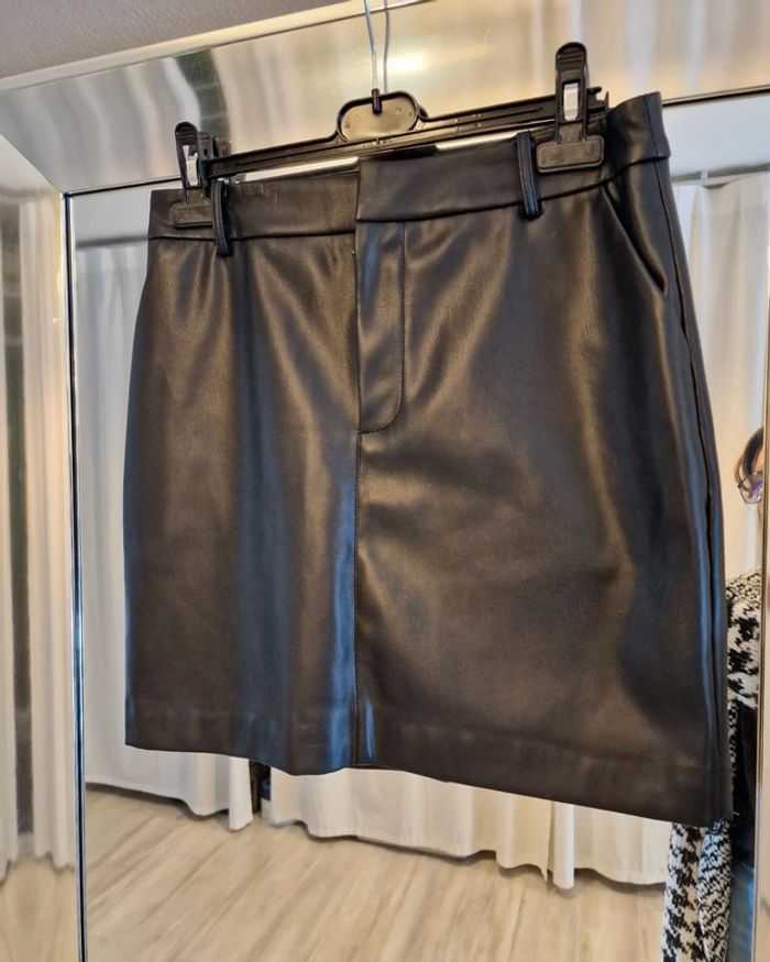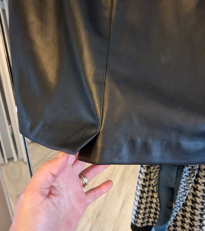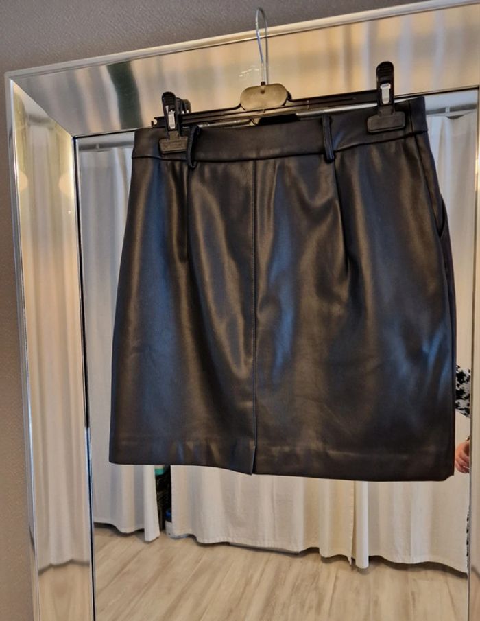 Jupe simili cuir noir 2 poches côtés Femeture éclaire Portée 1 fois Kiabi Taille 36 N'esitez pas à faire un tour dans mon dressing les réductions sur les lots sont activées