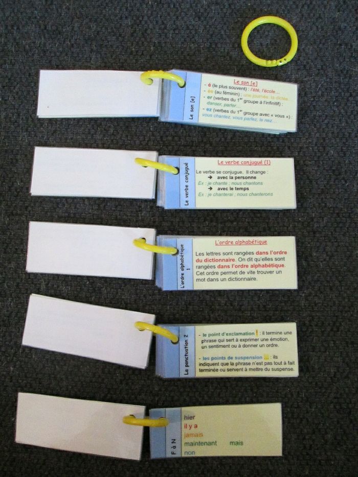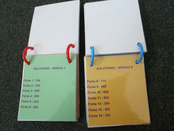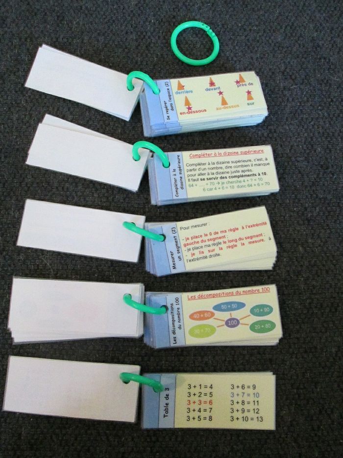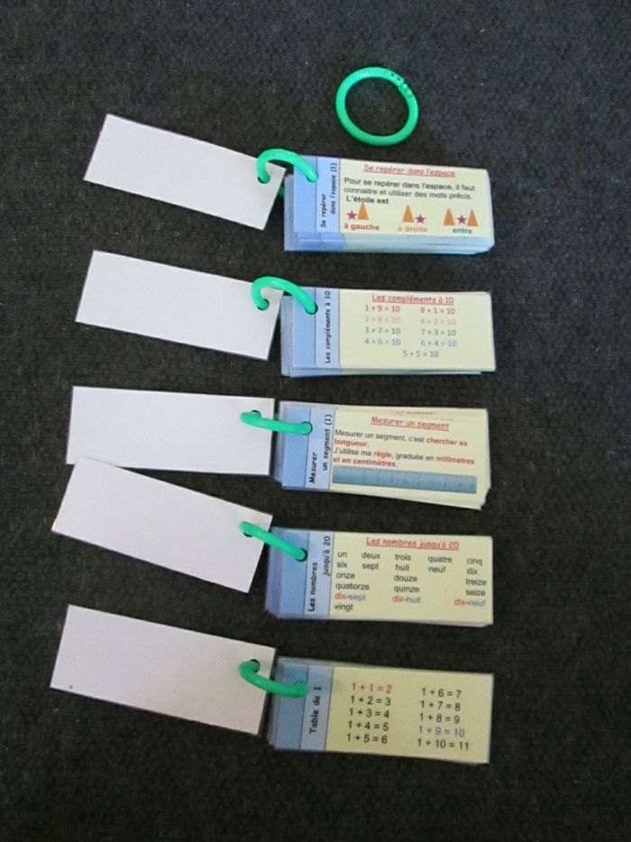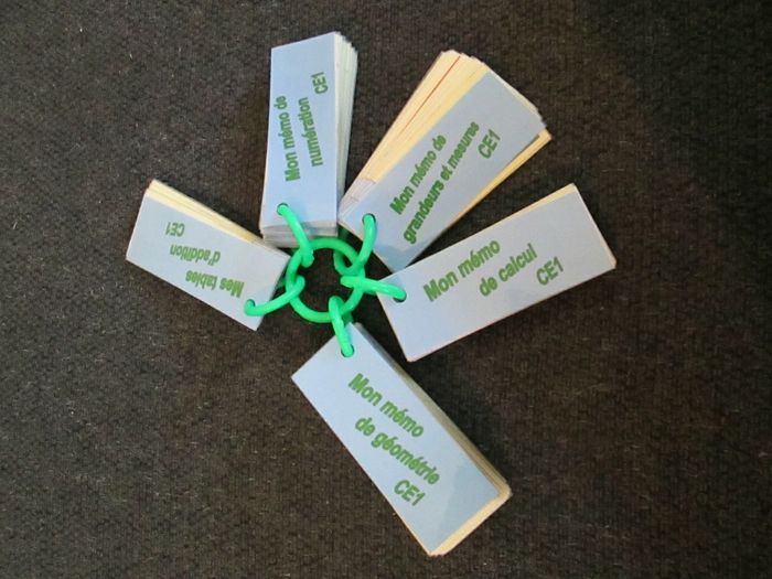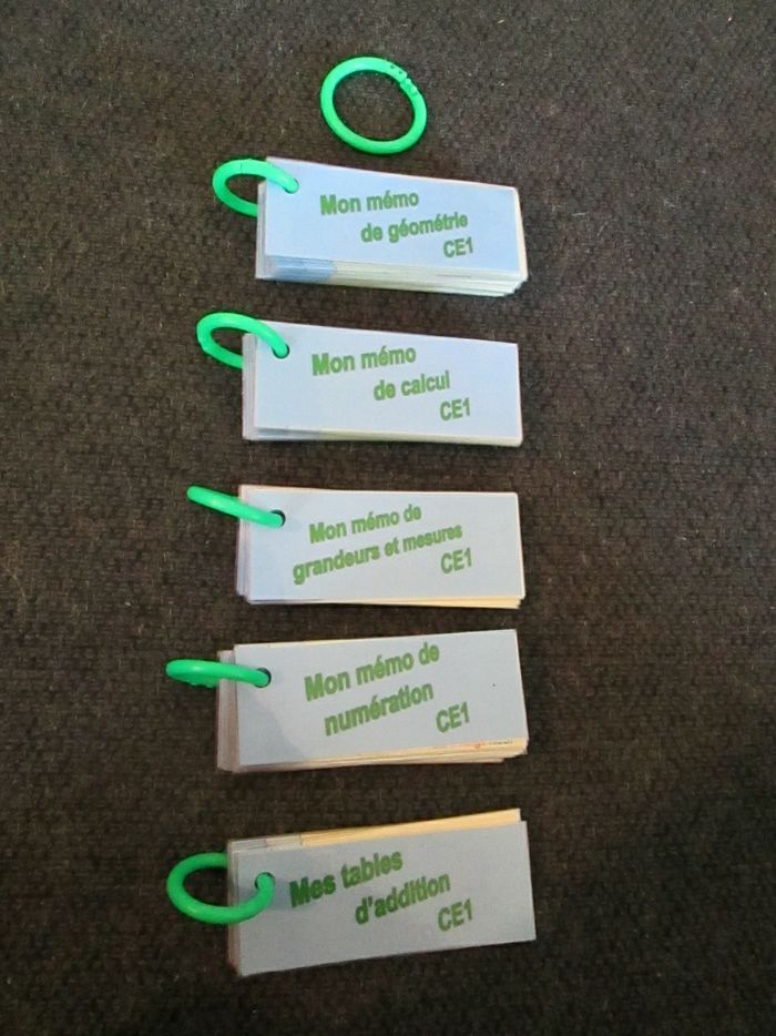 Lot pour le CE1 composé de 10 portes-clés mémos couvrant les programmes d'étude de la langue et de mathématiques. Les 10 portes-clés totalisent environ 280 étiquettes, toutes plastifiées une à une et reliées par des anneaux colorés en plastique. 2 carnets effaçables avec corrigés. S'utilisent avec des feutres d'ardoise. Attention, certains s'effacent mal. J'offre un manuel de lecture avec ce lot. Dernier lot 10€ au lieu de 40€.