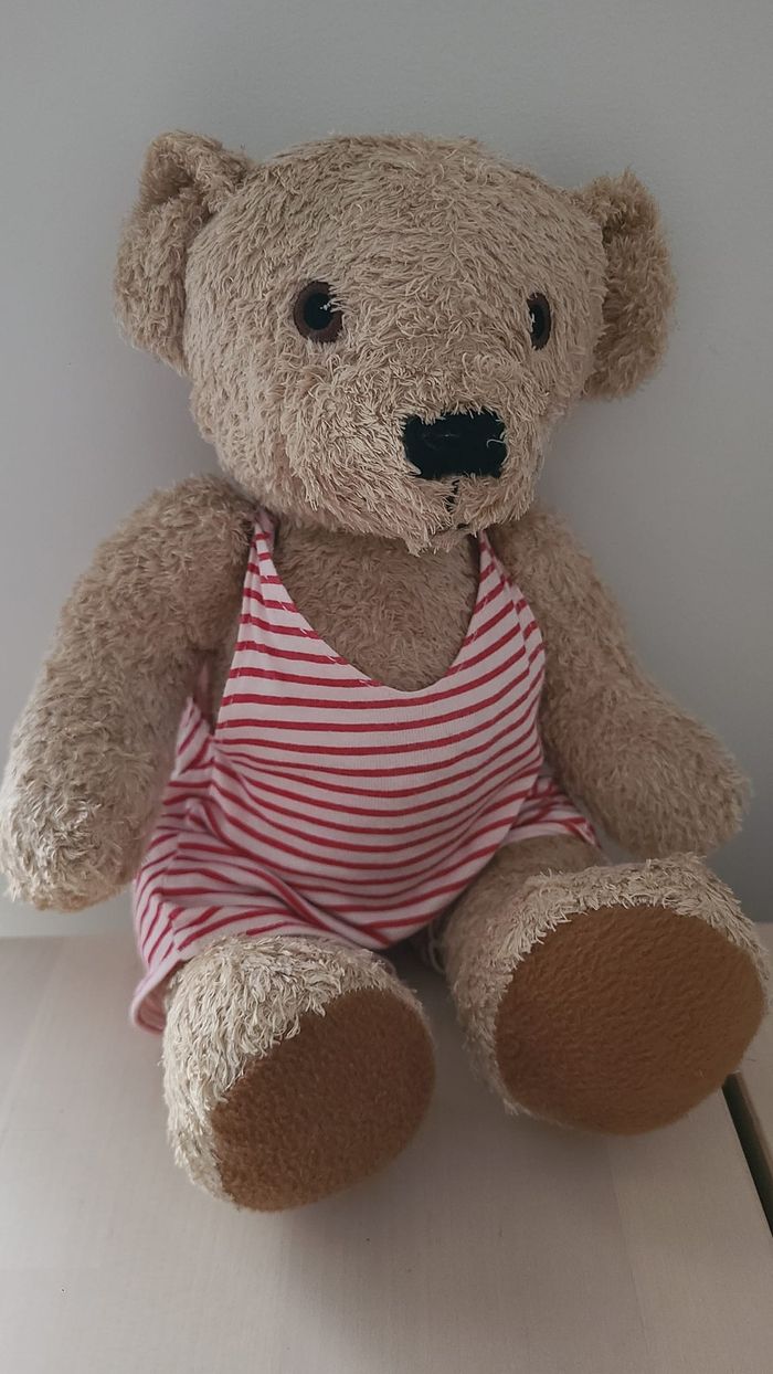 Peluche doudou en très bon état général d'un ourson habillé d'un maillot de bain marinière des années 20 style rétro vintage Environ 25 centimètres de haut Style rétro vintage années 20 43