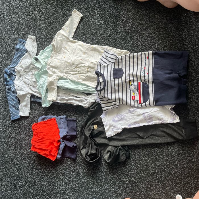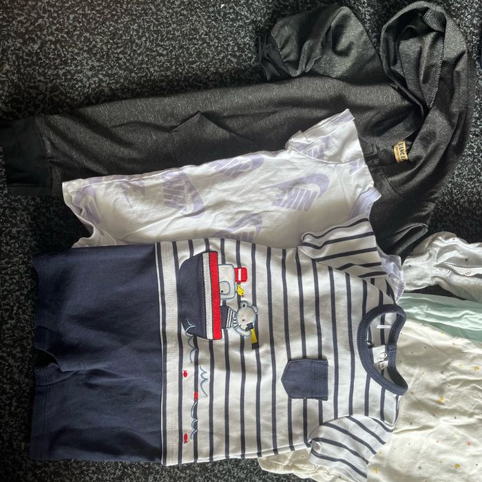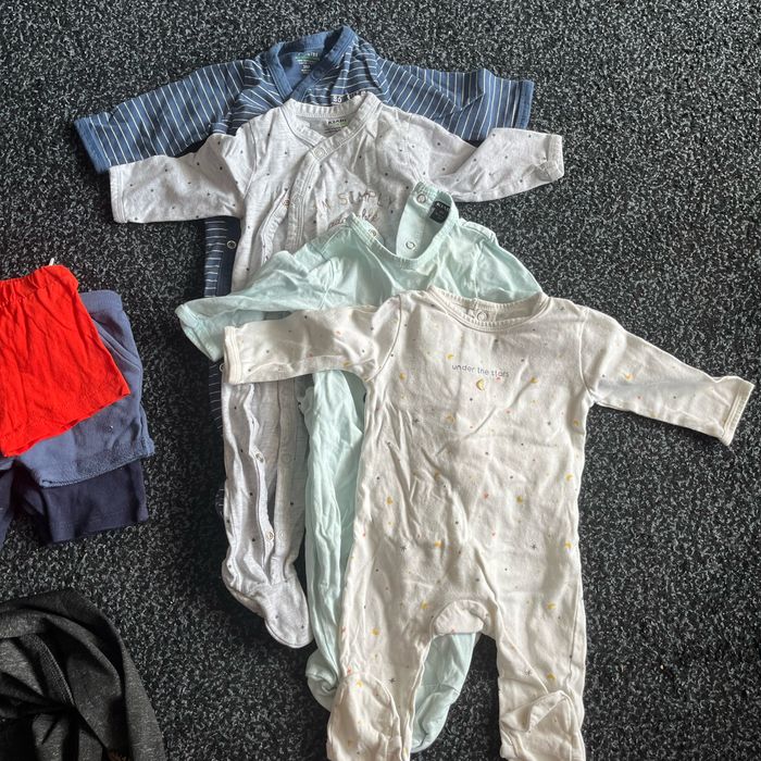 Bonjour Vends lots 3 mois 3 shorts 4 pyjamas (dont 2 s’ouvrent devant) (1 petite taille sur le pied voir photo) 3 combinaisons. (Dont une manche longue très légère, 2 combinaisons sont notés 6 mois mais je trouve qu’elles taillent petit)