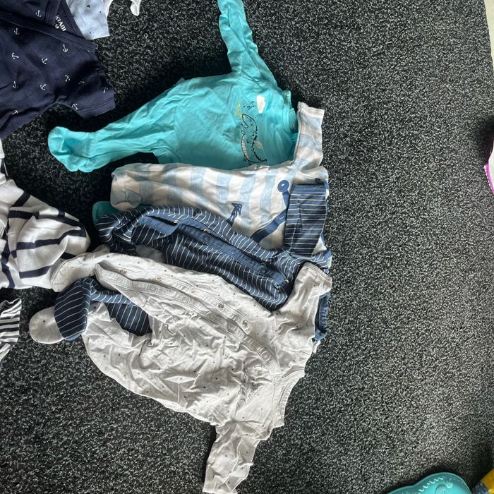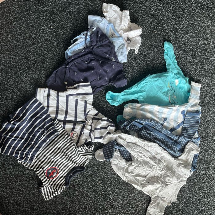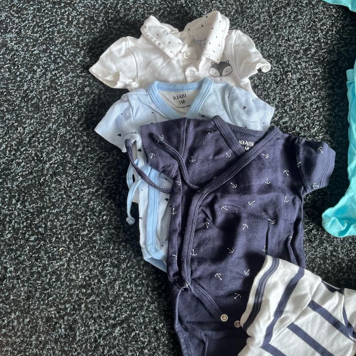 Bonjour Vends lot bébé 0/1 mois 4 pyjamas 3 bodies 1 short/teeshirt/veste manche courte