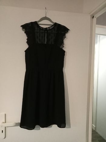Robe manches courtes, lien à la taille. Broderie papillon devant. Portée deux fois.