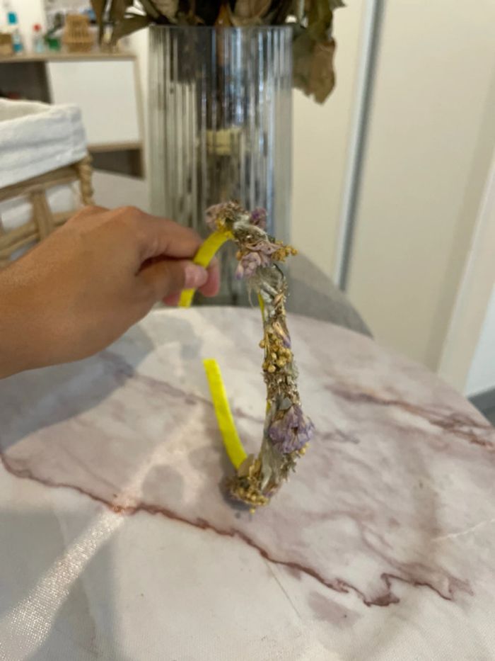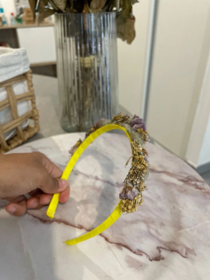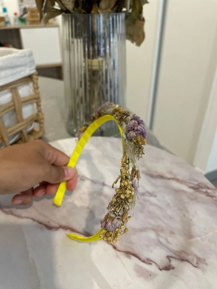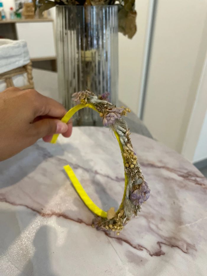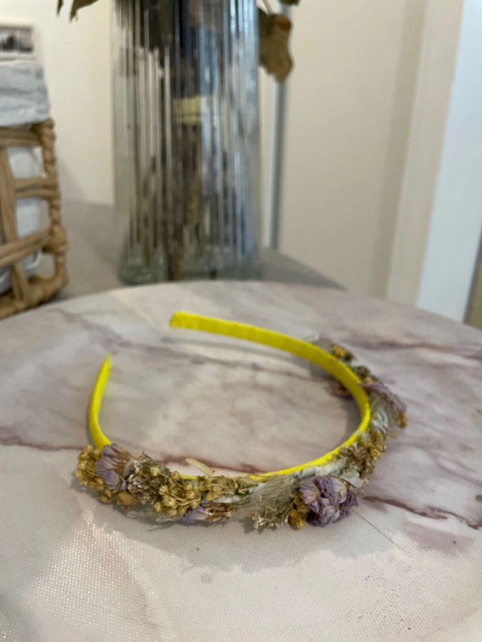 Serre-tête jaune couronne de fleurs violettes - photo numéro 5