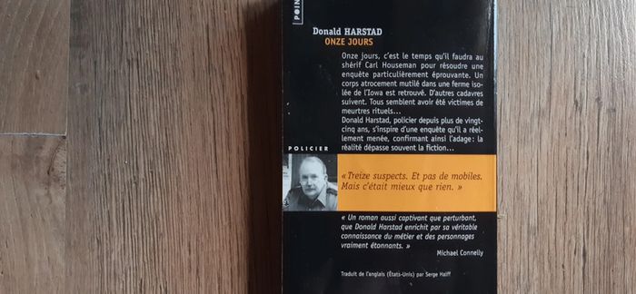 Onze jours, c'est le temps qu'il faudra au shérif Carl Houseman et à son unité pour résoudre une enquête particulièrement troublante et éprouvante. Tout commence par la découverte, dans deux fermes isolées de l'Iowa, de plusieurs corps atrocement mutilés. Les victimes semblent avoir été l'objet de meurtres rituels... Donald Harstad, policier dans l'Iowa depuis plus de vingt-cinq ans, s'inspire d'une enquête qu'il a réellement menée pour nous conter cette terrible histoire. Vérifiant l'adage selon lequel " la réalité dépasse la fiction ", on découvrira dans ce voyage au bout de l'horreur que les habitants des campagnes américaines n'ont rien à envier à ceux des mégapoles en matière de secrets, de déviances et de perversités. Un polar noir, captivant et diablement efficace.