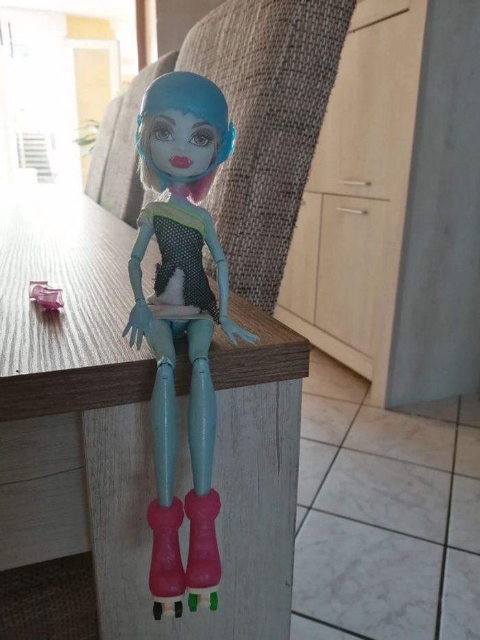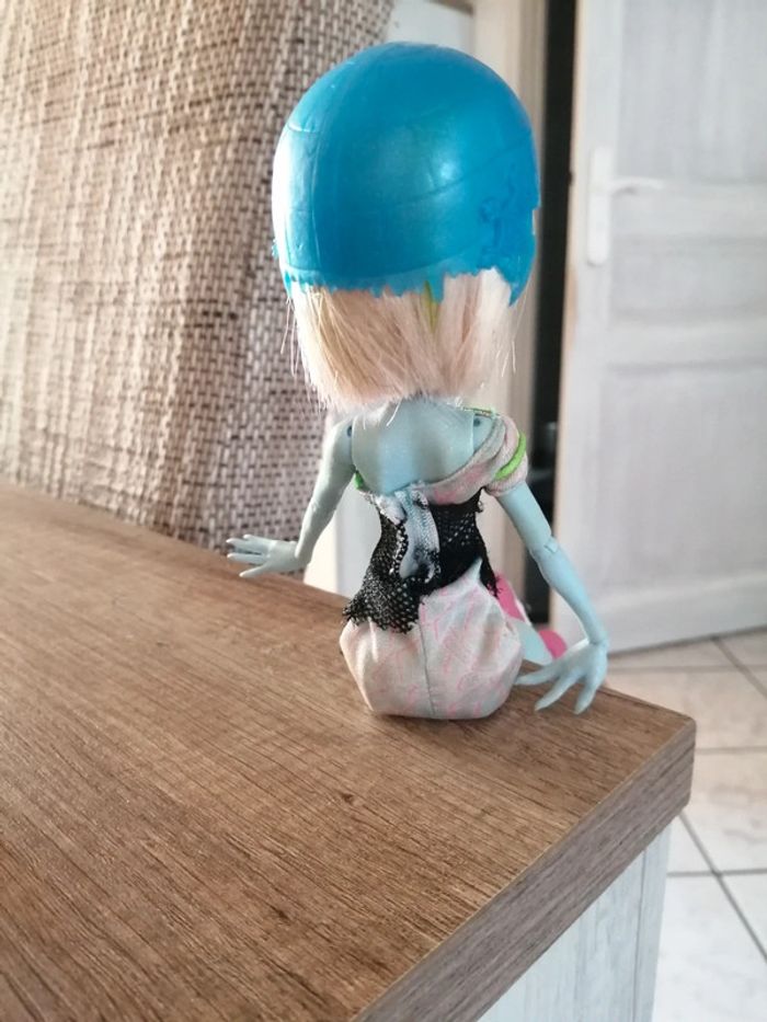 Poupée monster high Abby bominable Un genou est légèrement cassé. Et manque des paillettes à certains endroits vu que ma fille a beaucoup jouée avec. #Daddy11monsterhigh