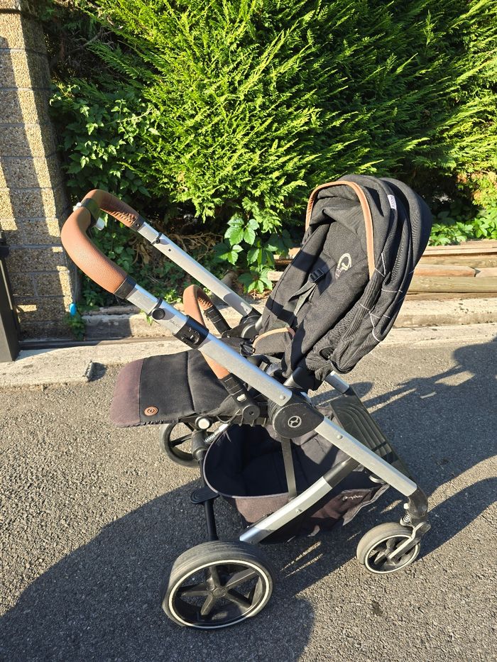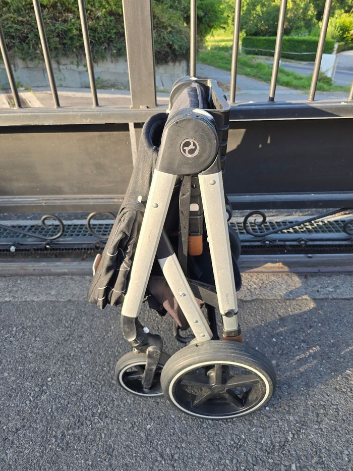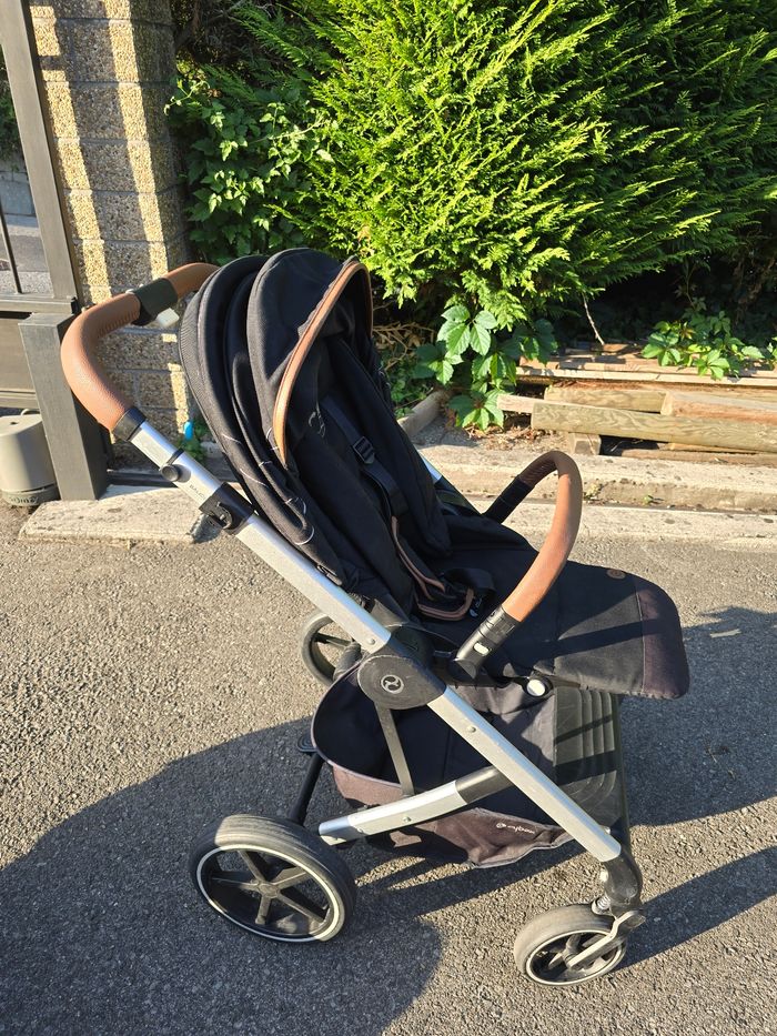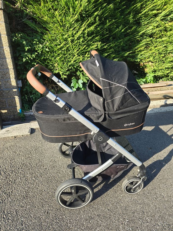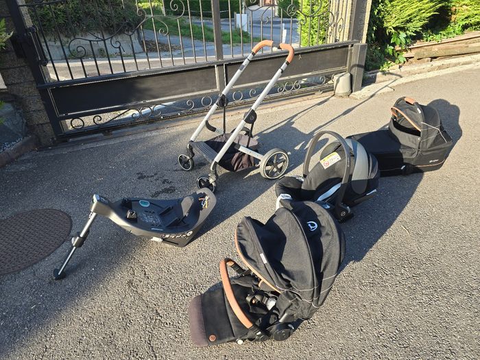 Trio poussette Balios S avec nacelle Cot S et cozy Cloud Z. Nous ajoutons également tous les accessoires que nous avions rajouté : protection pluie pour cosy, protection pluie pour assise balios S, ombrelle cybex et pochette de poussette cybex fixé sur le guidon. Possible d'acheter également la base pivotante cybex compatible cozy