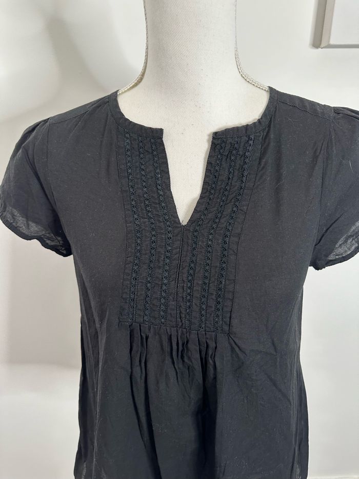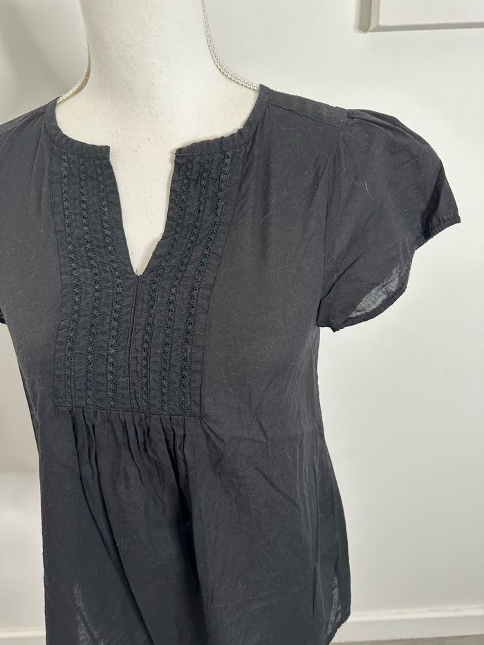 Blouse - Excellent état - Taille 36 équivalent S - Couleur noire - Manches courtes - Col brodé, broderies - Plus d’étiquette de taille ni de matière
