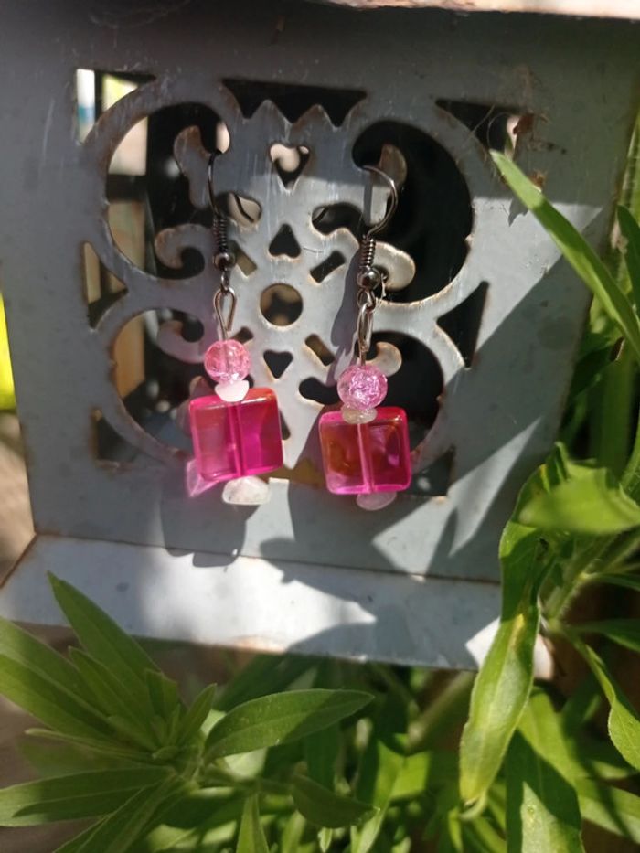 Boucles d'oreilles rose et aigüe marine - photo numéro 1