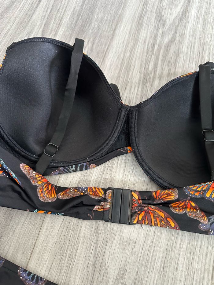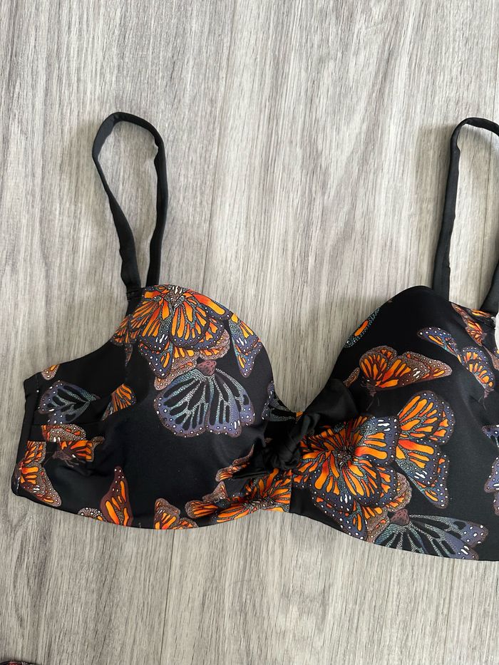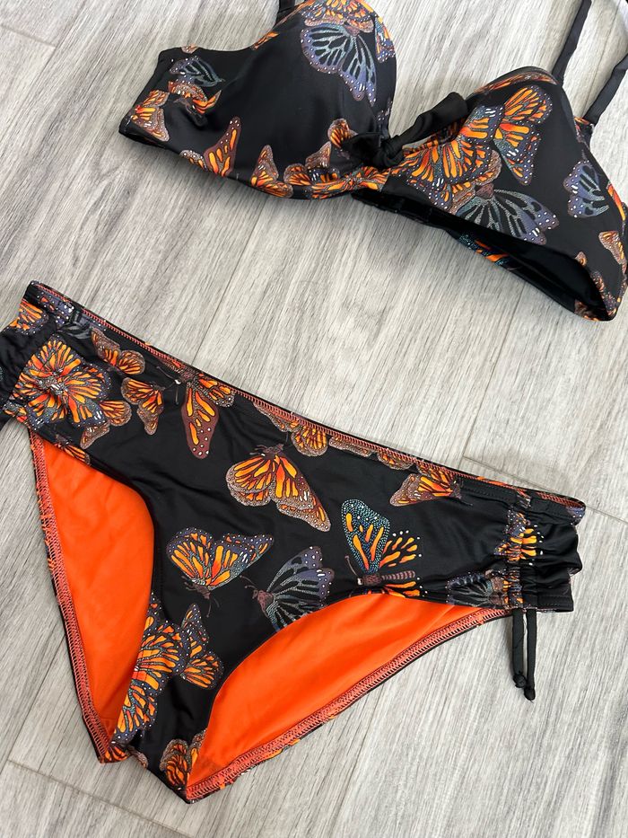 Maillot de bain - Excellent état - Taille 42/44 équivalent XL/XXL - Imprimés papillons - Orange et noir - Deux pièces - Bretelles réglables - Doublure intérieure - Plus d’étiquette de taille ni de matière