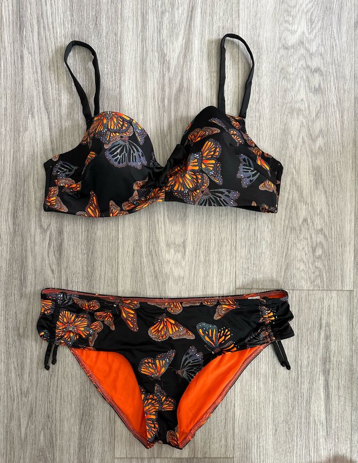 Maillot de bain deux pièces papillons orange et noir T42/44 XL/XXL - photo numéro 1
