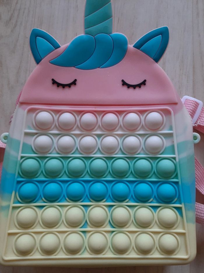 Petit sac à dos anti stress pour enfant en forme licorne.