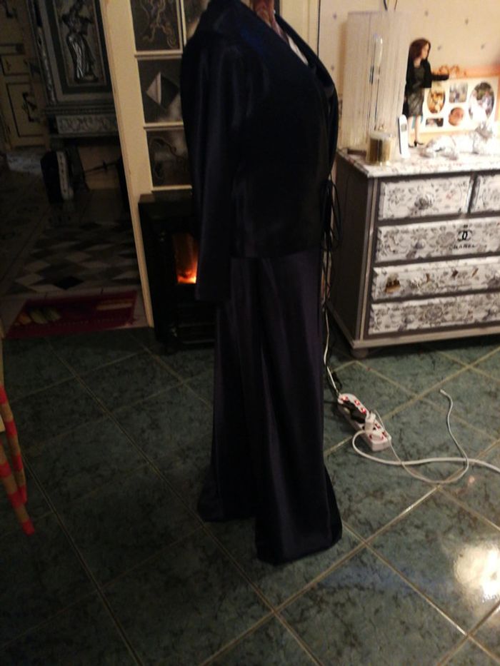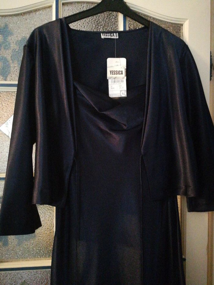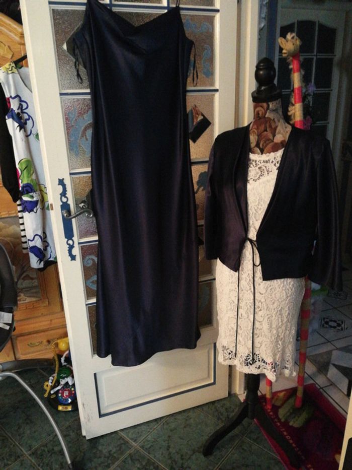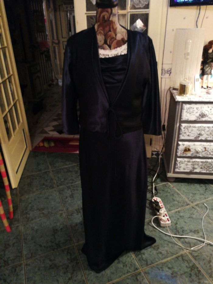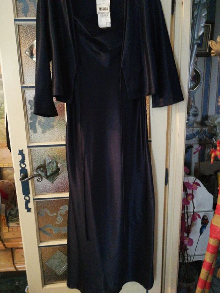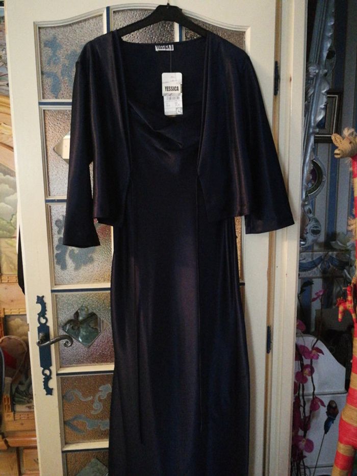 Robe de soirée et sa veste effet satiné couleur bleu marine très chic neuve