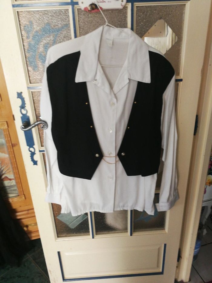 Chemisier vintage avec gilet et petite chaînette année 80 fabrication française