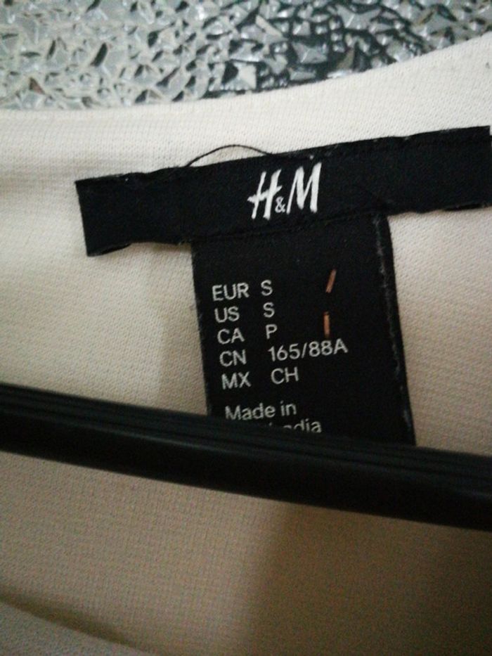 Robe h et m en parfait état comme neuve taille indiquée s mais taille très grand correspond a un 40 aisselle a aisselle 42 cm polyester elasthane