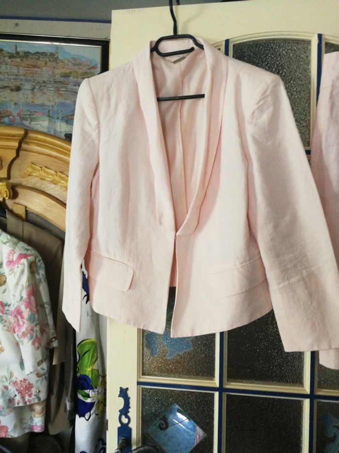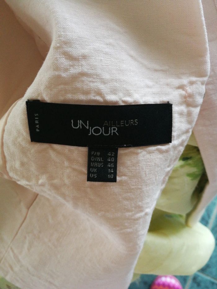 Tailleur jupe un jour ailleurs chaque pièce peut être porté séparément entièrement doublée jolie boutons sur les manches porté une fois pour cérémonie comme neuf 100 💯 lin