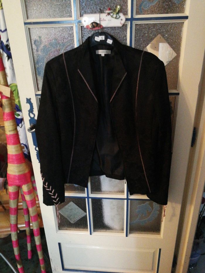Veste jacqueline riu entièrement doublée jolie noeud sur les manches broderie sur le devant très chic comme neuve fermeture éclair