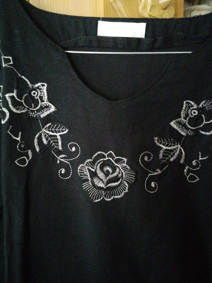 Robe noire brodée en haut sur les manches et bas de la robe très grande taille 44 46 xxl