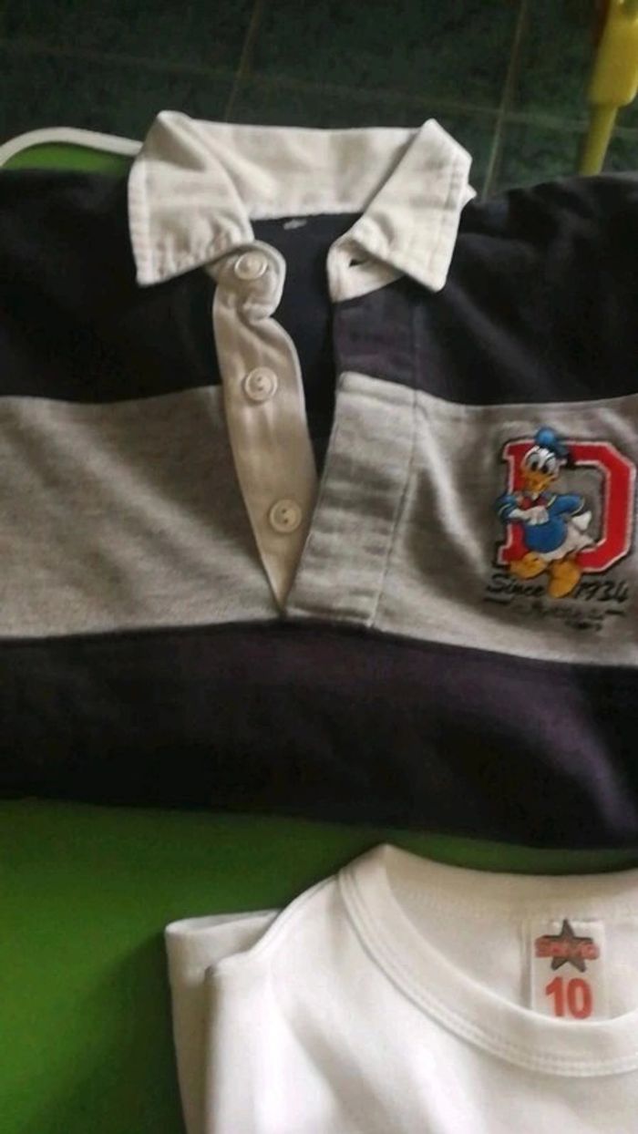 3 polos dont Disney cyrillus et jacadi et un tee shirt angel 1 tee shirt RG noir 1 tee noir en taille 10/12 ans je donne le débardeur adidas