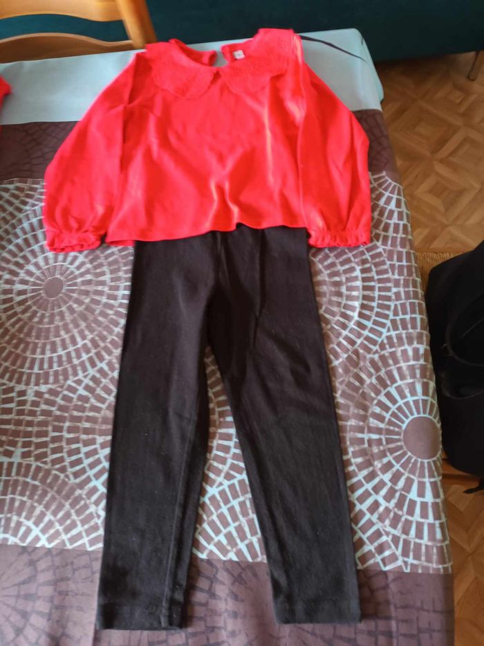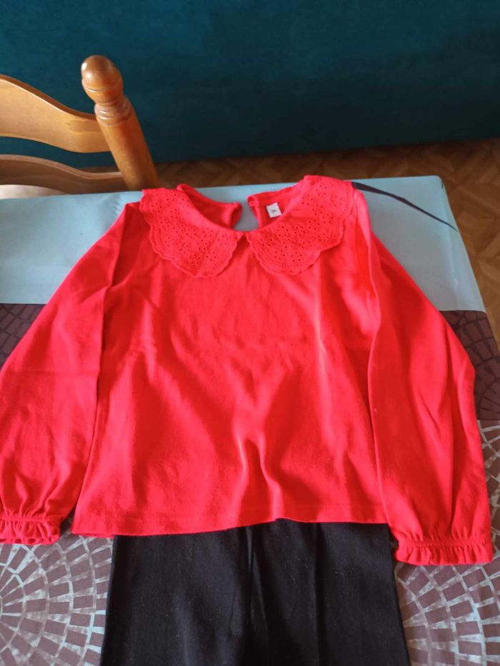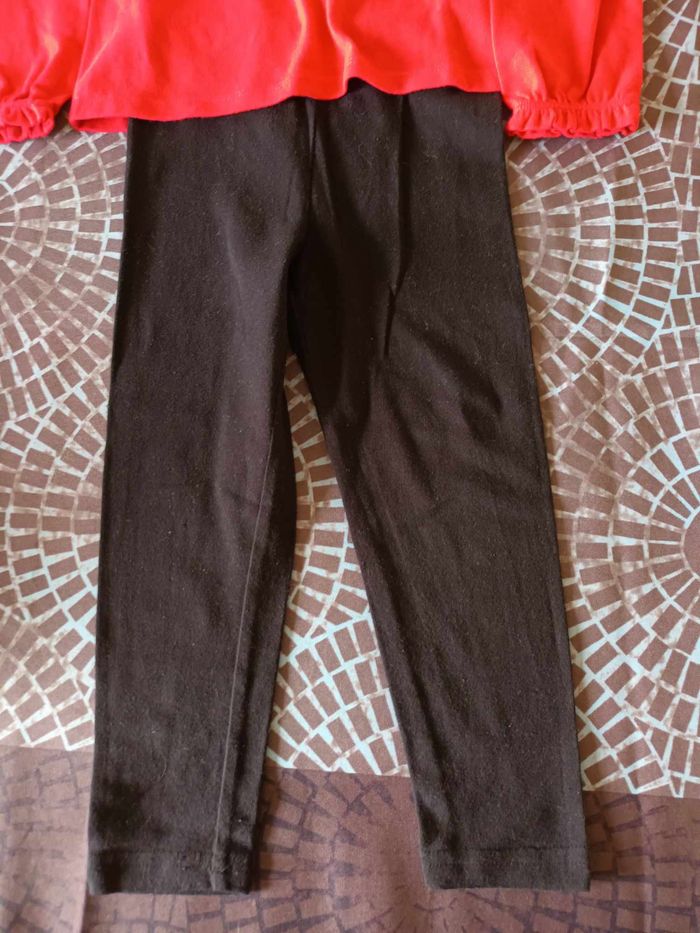 ensemble tee shirt + leggings fille couleur rouge et noir marque plus 36 mois tres bon etat