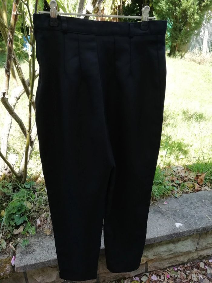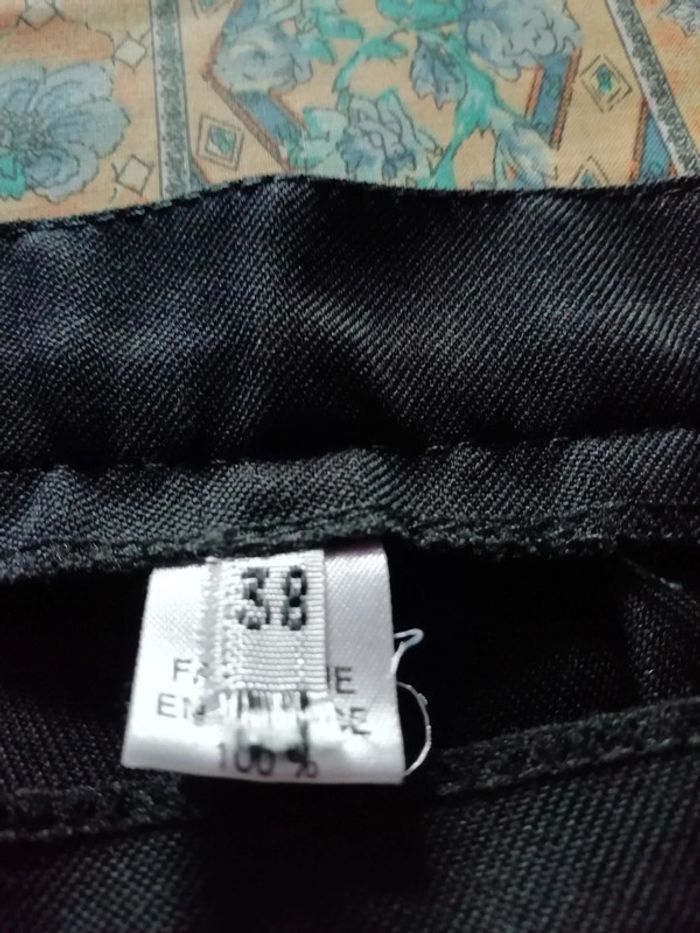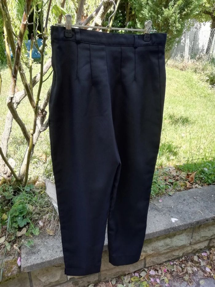 Porté quelques fois 100%polyester tres elegant j ai rajouté des photos mais le pantalon est bien noir
