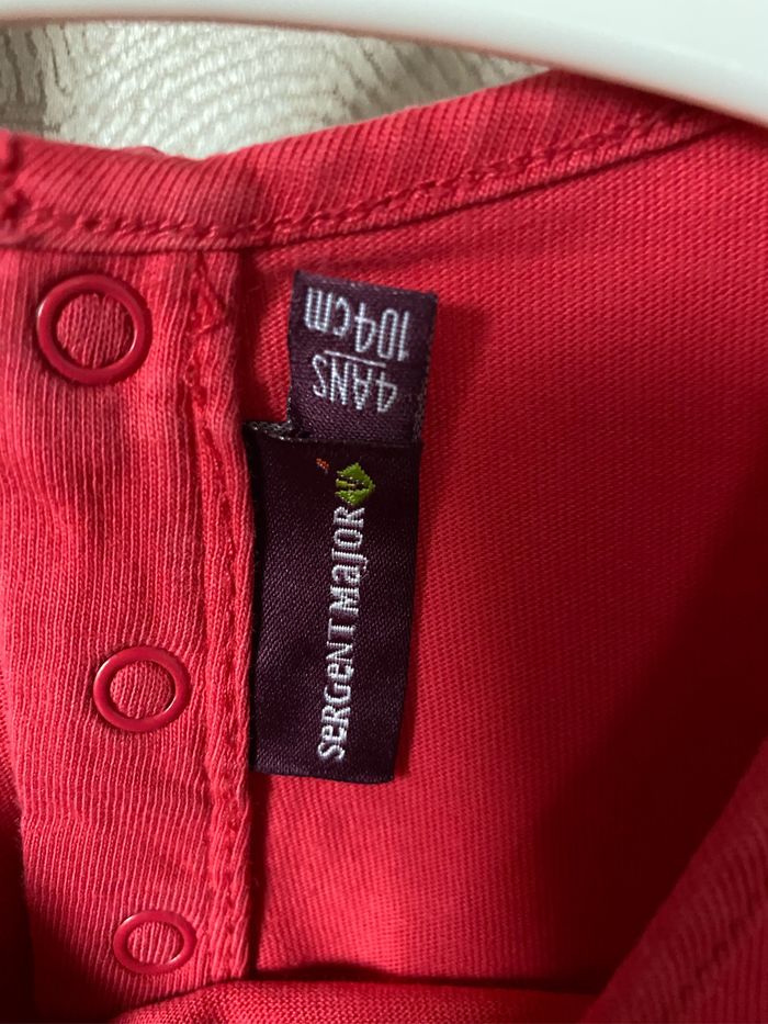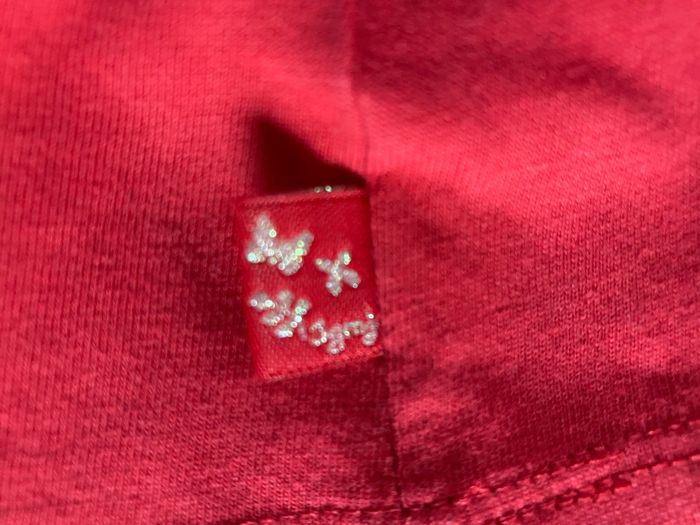 T-shirt framboise manches longues Bande papillons pailletés Taille 4 ans 104 cm Sergent Major Étiquette coupée, sûrement du coton Une tâche sur une manche ( voir photo )