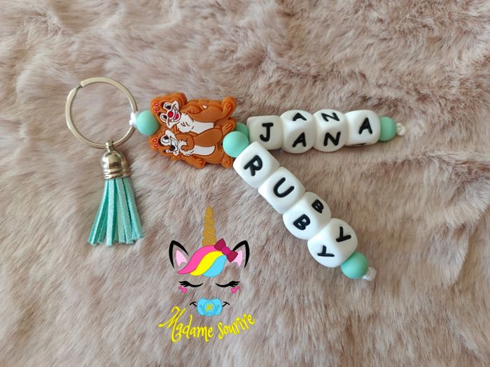 Un porte clés 2 branches Tic & Tac pour accrocher vos clefs en toute sécurité, composé de perles en silicone alimentaire et/ou bois naturel. 100% personnalisable, énormément de choix de clips, perles, etc… Envoyez-moi un message afin de créer main dans la main votre accessoire idéal. Une photo du prototype de celui-ci vous est envoyé pour validation avant envoi.