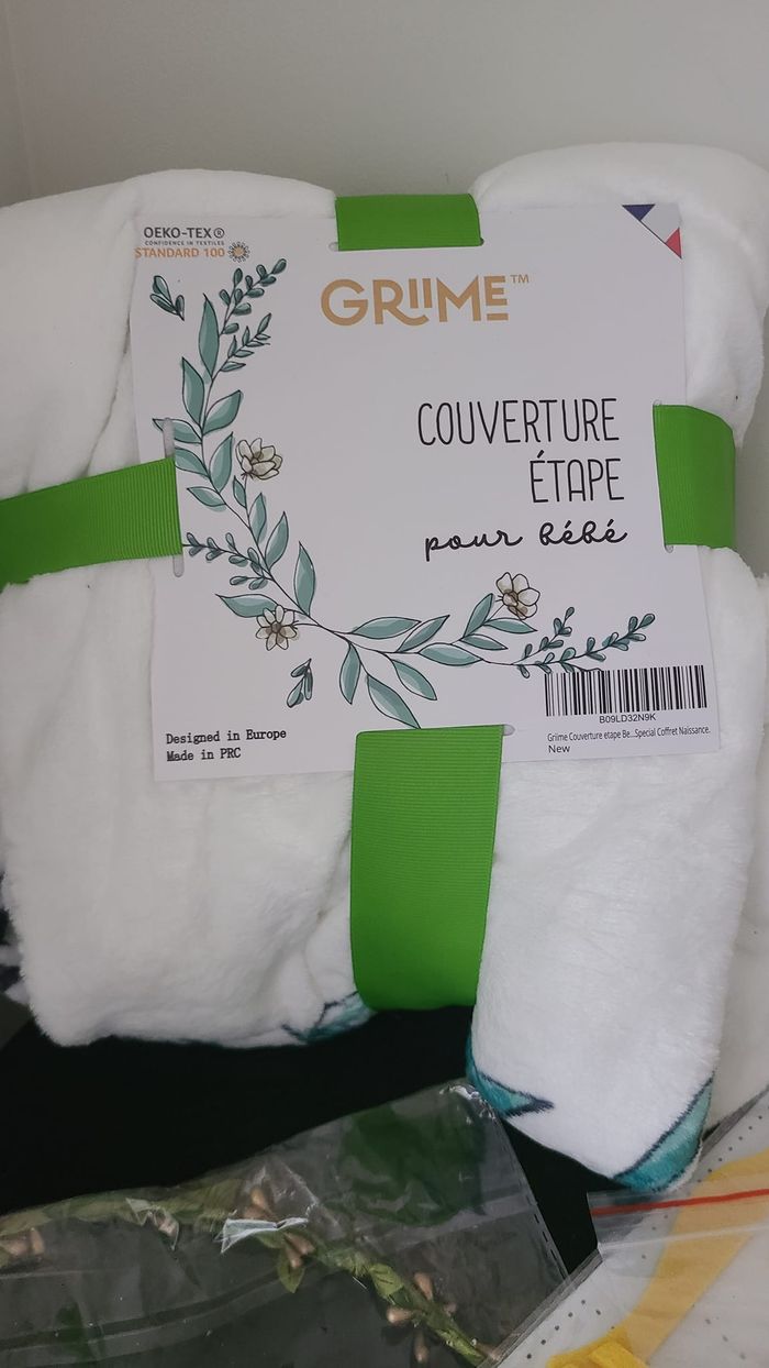 Griime Griime Couverture etape Bebe en FRANÇAIS, Cadeau Naissance Fille ou Garcon, Inclus 12 Carte , Album Photo, Couverture personnalisée, Tapis Mois Bebe Special Coffret