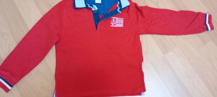 Comme sur les photos Polo Cyrillus longues manches rouge, très joli