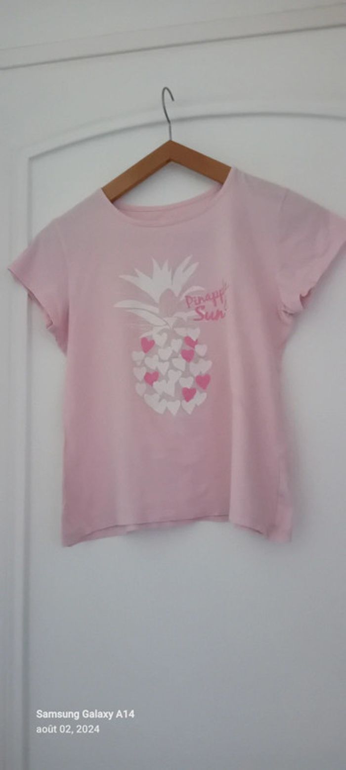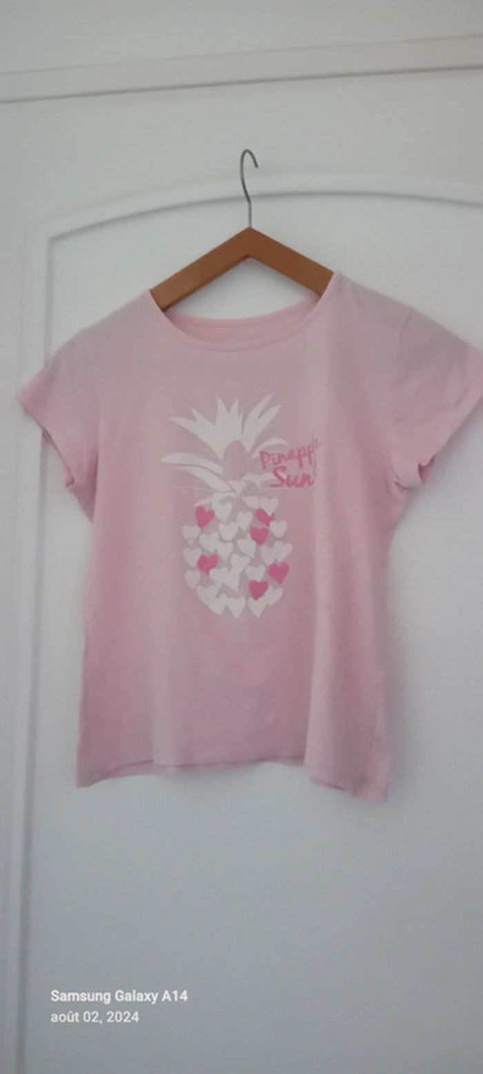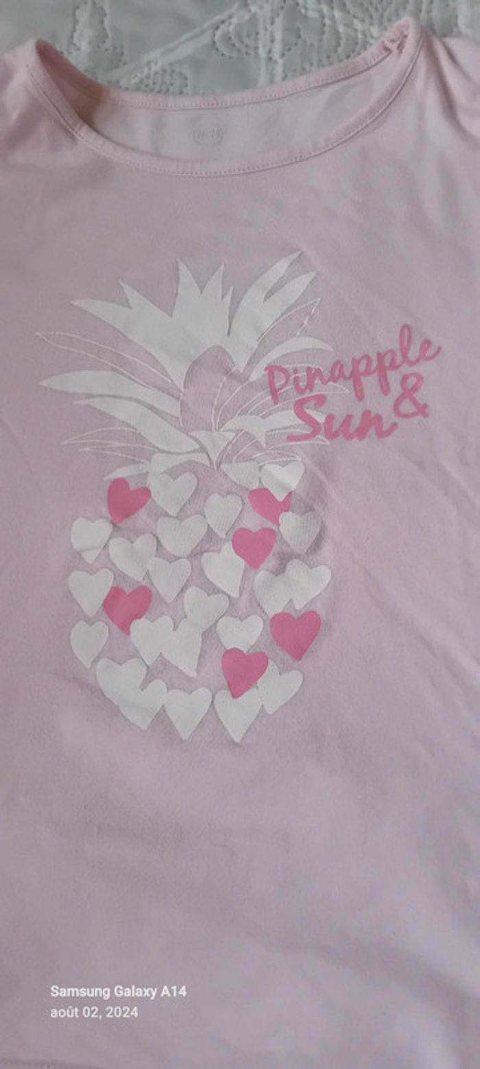 Tee shirt theme ananas et cœur rose fille 12 ans tex - photo numéro 8