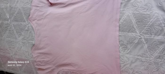 Tee-shirt large manches courtes en coton motif ananas et cœur longueur 47 cm largeur aisselles à aisselles 42 cm largeur épaules 34 cm porté quelques fois en bon état #midole #midolefille12ans #midoleenfant #midolefille #tex #ananas #cœur #rose #fille12ans