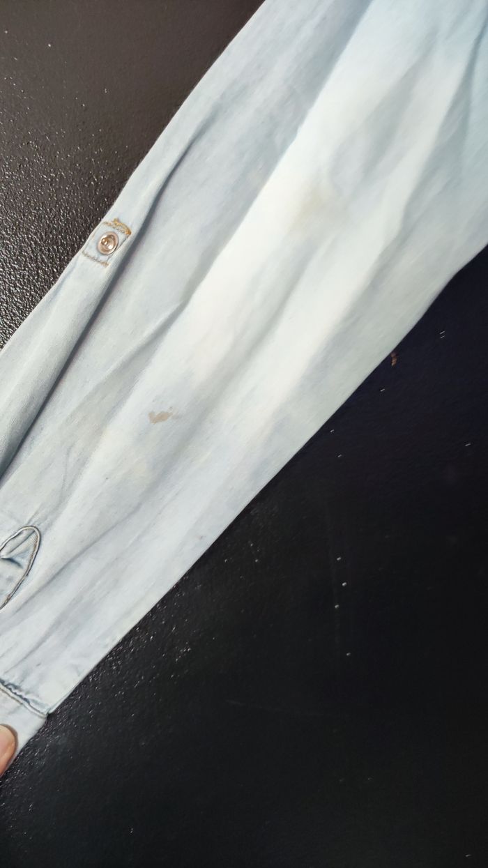 Chemise longue manches retroussables Garçon 12 ans Attache aux manches Matière fine idéal été/automne 💯% coton Bouton a pression Défauts taché a une manche (voir dernière photo).