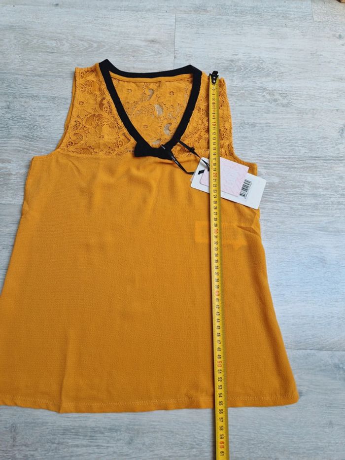 Haut débardeur Naf Naf XS neuf avec étiquette décolleté en dentelle moutarde et noir - photo numéro 6
