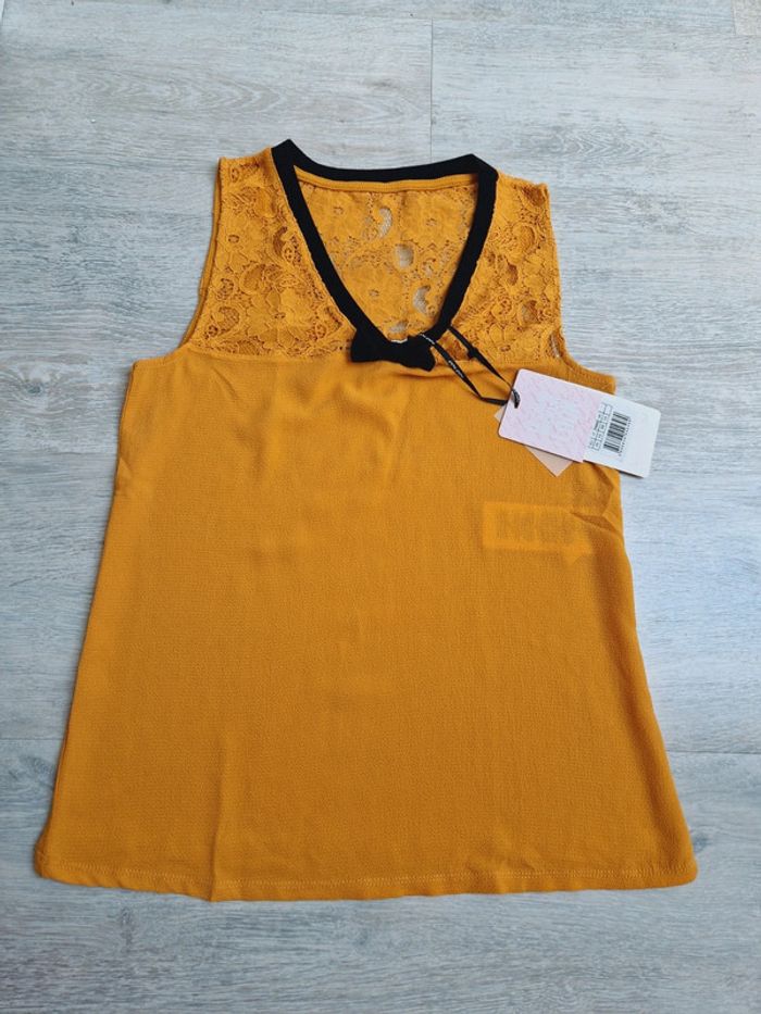 Haut débardeur Naf Naf XS neuf avec étiquette décolleté en dentelle moutarde et noir - photo numéro 1