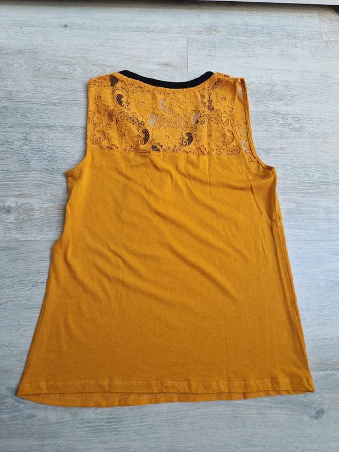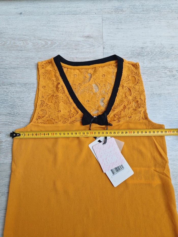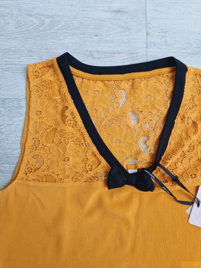 Haut débardeur Naf Naf XS neuf avec étiquette décolleté en dentelle moutarde et noir - photo numéro 3