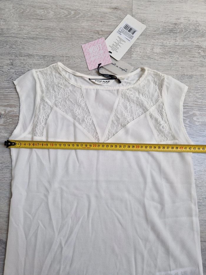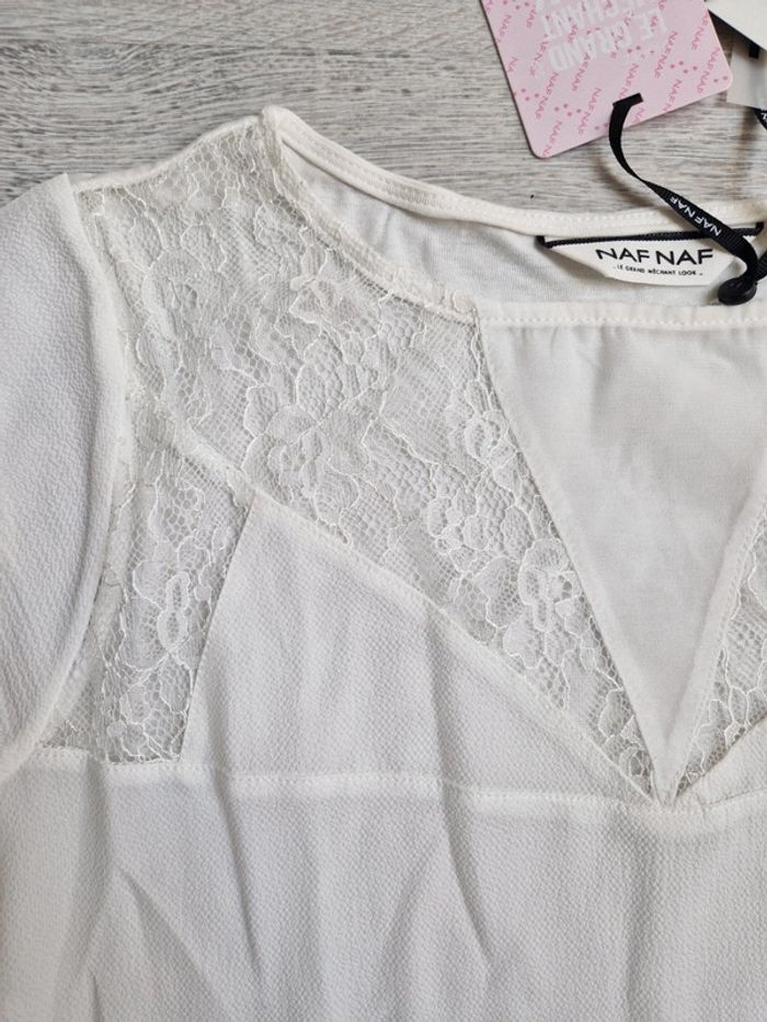 Top Naf Naf neuf avec étiquette XS écru décolleté dentelle - photo numéro 7