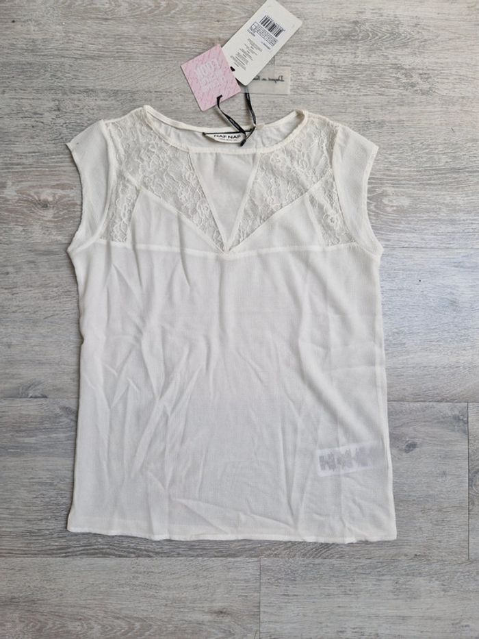 Top Naf Naf neuf avec étiquette XS écru décolleté dentelle - photo numéro 1