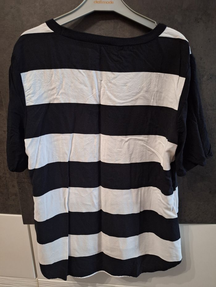 Joli t-shirt fluide rayé blanc et noir, dos plus long, très agréable à porter, marque Esmara, taille 38, peu porté en très bon état