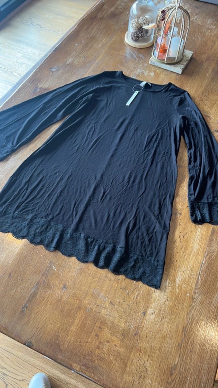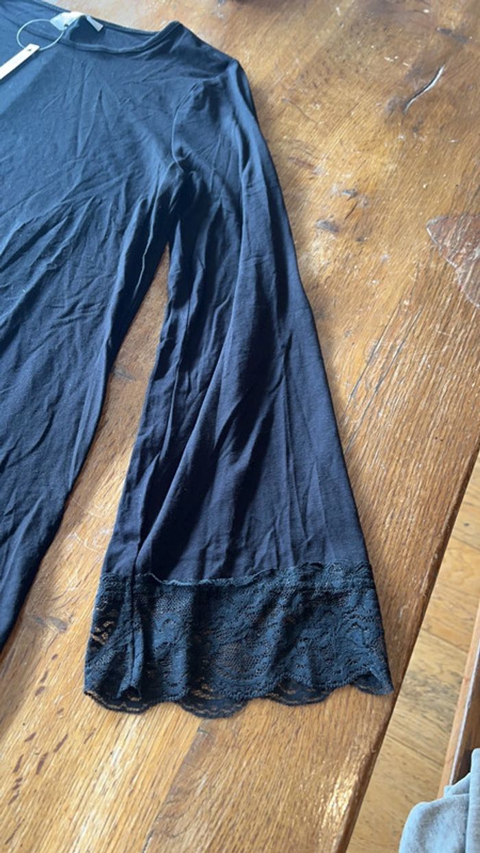 Jolie petite robe noire avec manches évasées ainsi que bas de la robe Neuve Taille 38