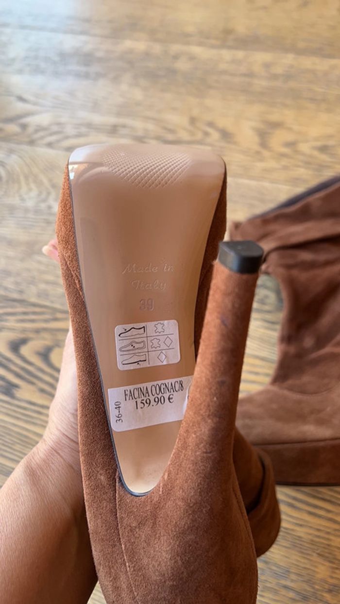 pointure39 elles sont neuves mais le cuir intérieur s’effrite c’est la raison du petit 💲 elles sont parfaites de l’extérieur
