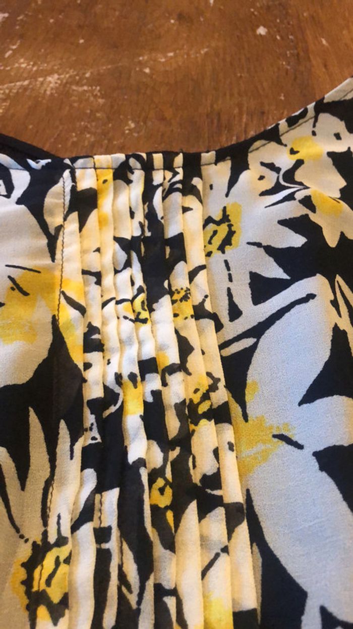 taille L mais convient plutôt à un M fleurie beige,jaune et noir