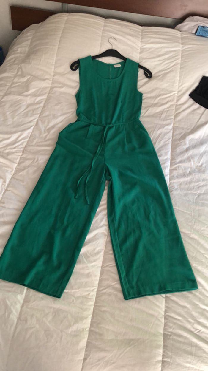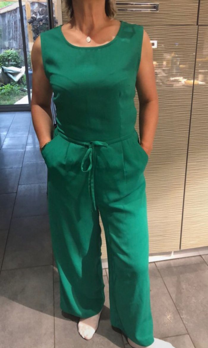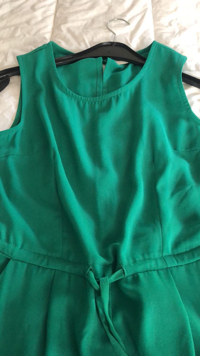 magnifique combinaison sans manches vert sapin très tendance taille 36 lien de serrage à la taille 2 poches