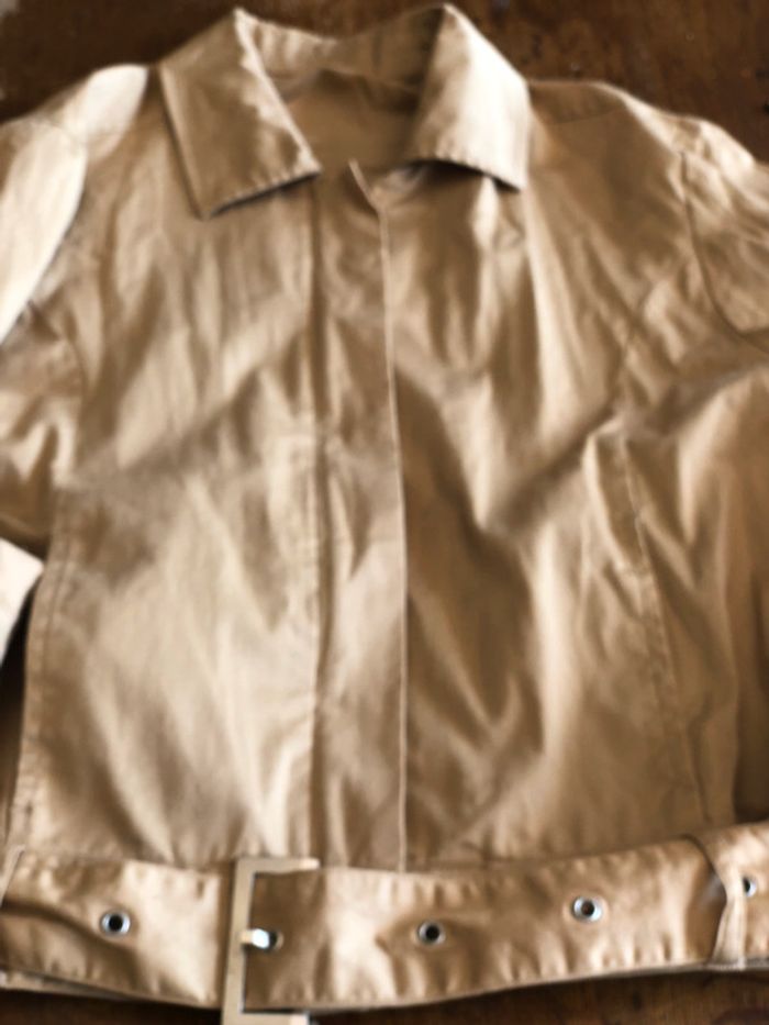 taille 40 couleur beige 100%coton pantalon cropped fendu coupe droite large petit blouson assorti 2 poches