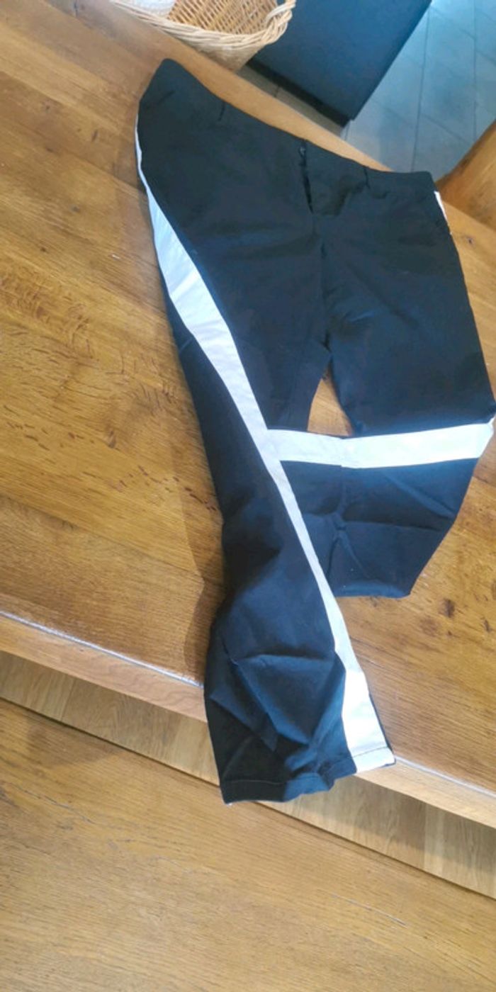 Taille 46 Bande blanche sur les côtés Coton et elastane Se porte assez court sur les chevilles.
