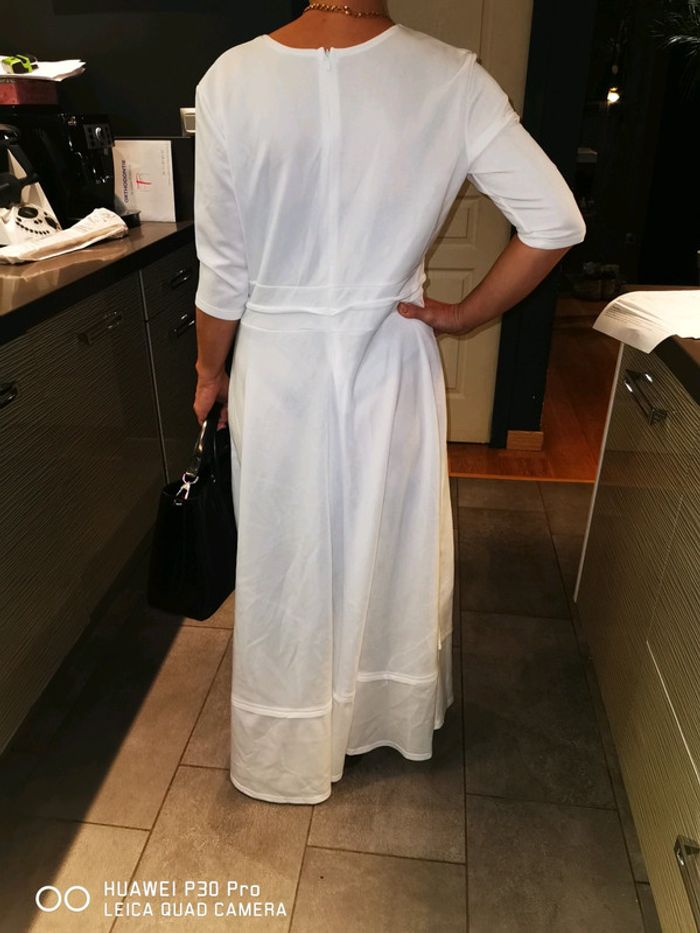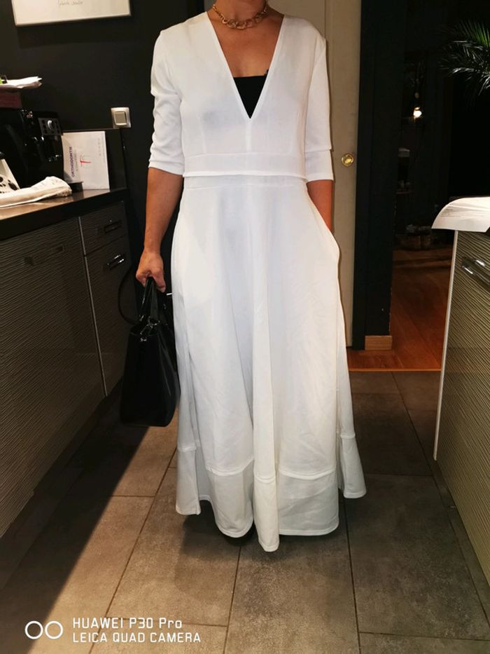 Jolie robe très longue blanche avec 2 poches Col V Taille 38 Le mannequin mesure 1,65 pour une taille 36.