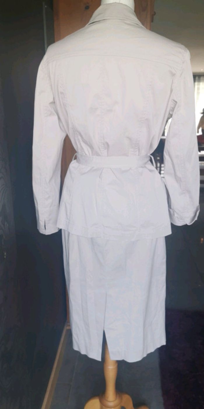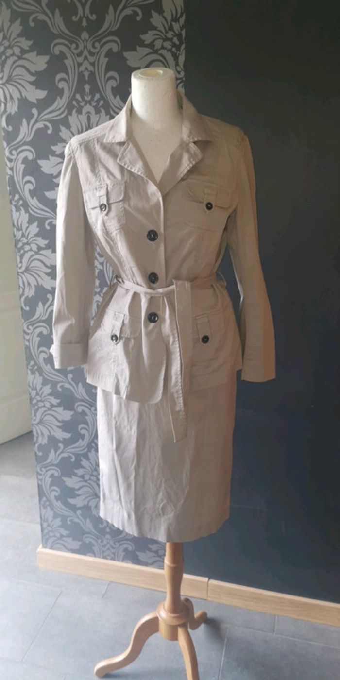 Neuf couleur taupe Jupe crayon Fendue Extensible et taille haute Saharienne avec ceinture et manches 3/4 fendues aux poignets Extensible