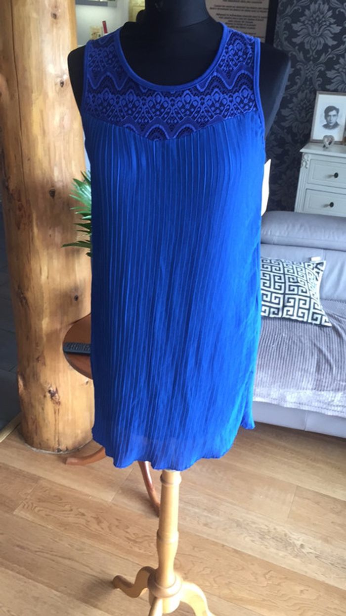 jolie petite robe plissée bleue électrique taille S neuve