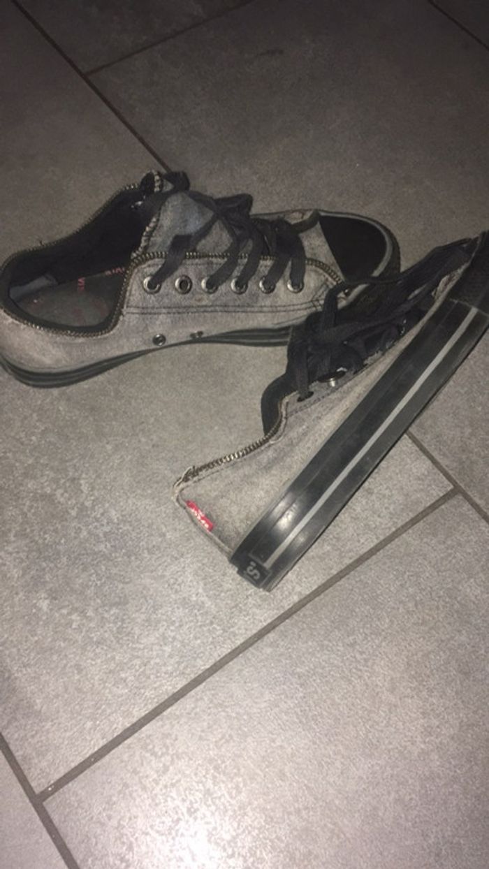 petits baskets Lévis gris et noir en parfait état cuir et toile